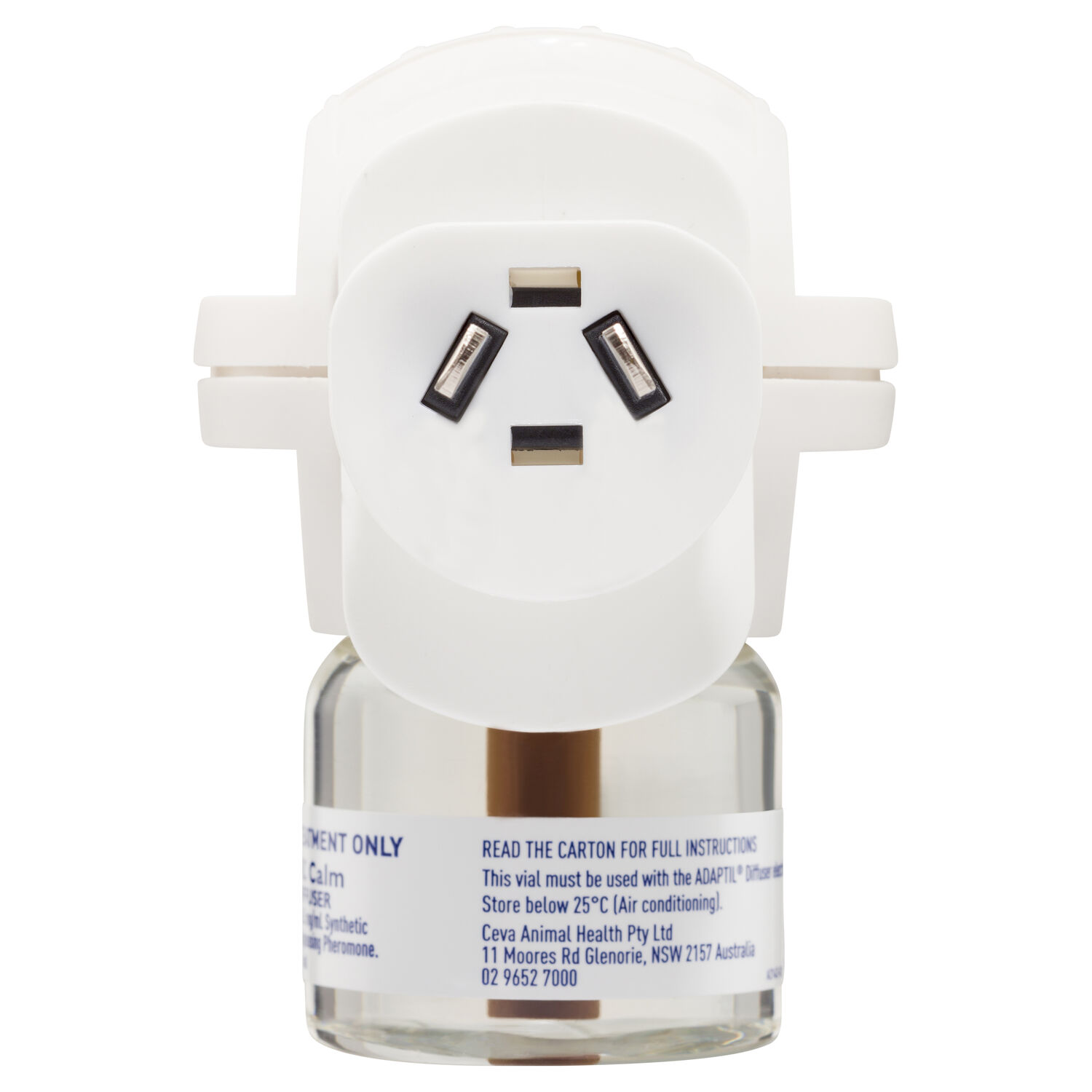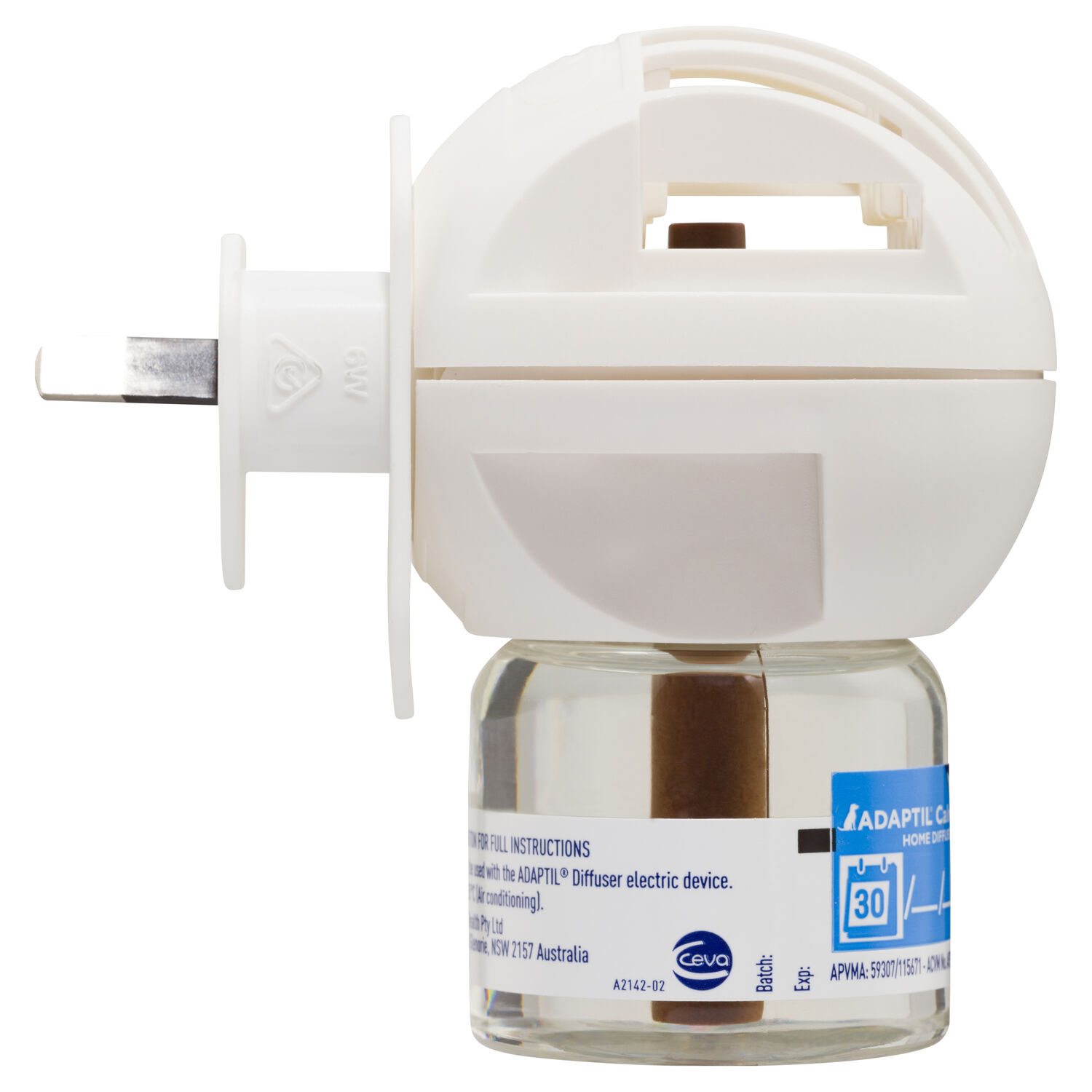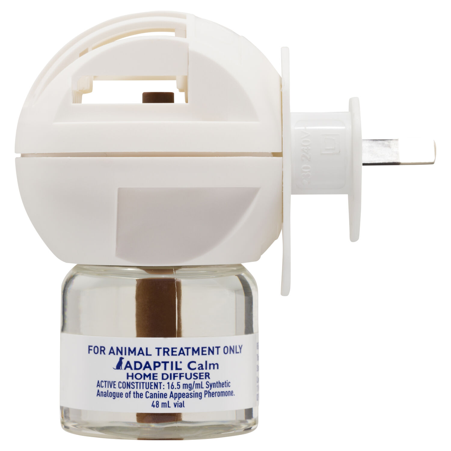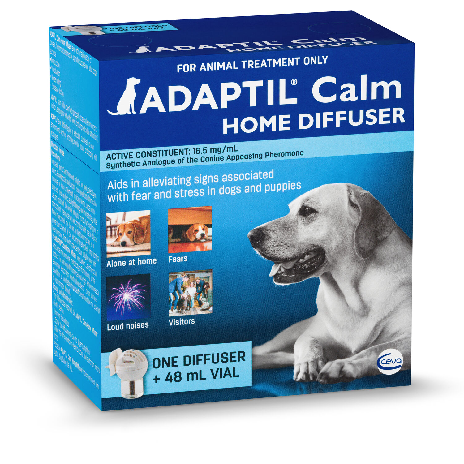 The Adaptil Calm Home Diffuser continuously releases Adaptil's dog-appeasing pheromone into your dog's environment to help promote feelings of calm and well-being. Adaptil is recommended for the control and management of fear and/or stress-related behaviours in puppies and adult dogs including: