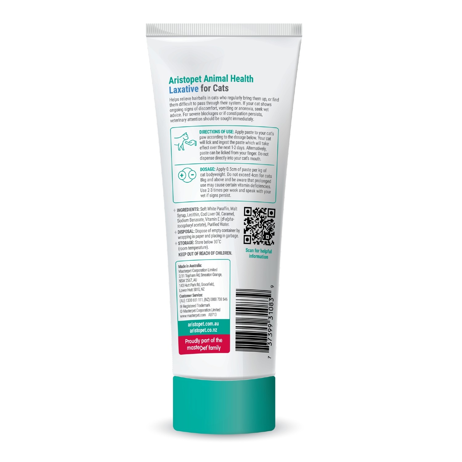 Relieves hairballs and mild constipation in cats and kittens. Cats and kittens ingest hair as a result of self-grooming. This hair may then accumulate in your cat’s stomach and form hairballs. Signs of hairballs are coughing, vomiting, gagging and constipation. This easy to apply laxative paste for cats aids in relief of hairballs and mild constipation in cats of all ages. The specially formulated flavour of this cat laxative paste means cats typically enjoy the taste.