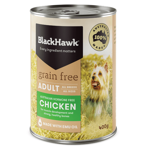 Black Hawk's tasty, grain free wet food is made from lean and highly digestible chicken, with added vegetables and essential oils. Free from artificial colours, flavours and preservatives, it has all the quality nutrients, vitamins and minerals your dog needs for a complete and balanced diet. It can be enjoyed on its own or combined with dry food for extra variety at mealtime. Gentle on the stomach and skin, it includes non-grain carbohydrates to support digestive health. Key Benefits