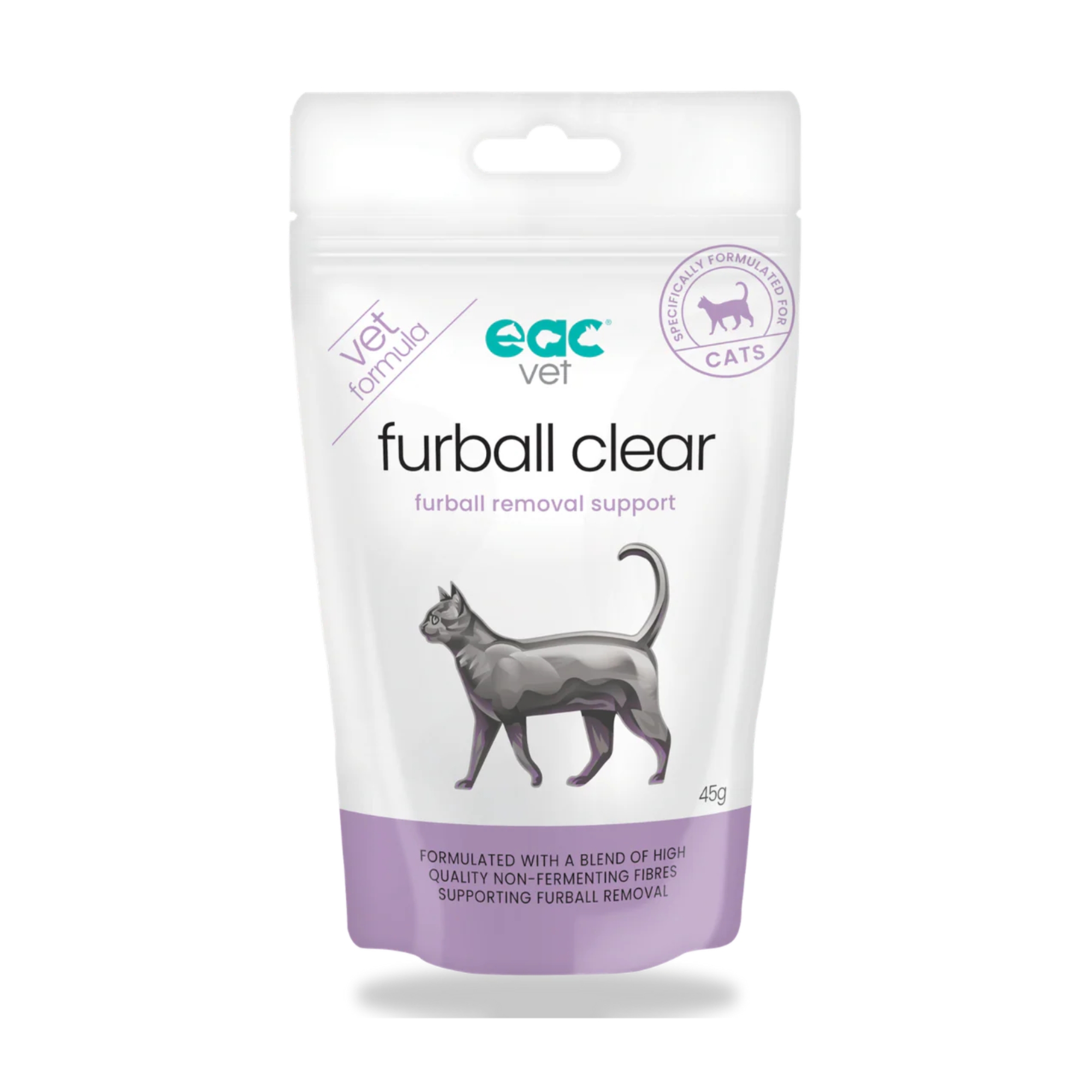 Furball Clear is an intuitive, fiber-based veterinary treatment support supplements, designed to address common digestive and elimination issues in cats. This product combines the mechanical effects of fibrillated lignocellulose with the gel-forming benefits of psyllium husk, enhanced with prebiotic support for digestive balance and stool quality. The fibrillated fiber matrix in these products refers to lignocellulose that has been physically processed to form ultra-fine strands. This structure enhances water-binding, forms a dense entangling network within the gut, and delivers consistent mechanical stimulation that improves stool formation, motility, and hair/fiber transit. Purpose