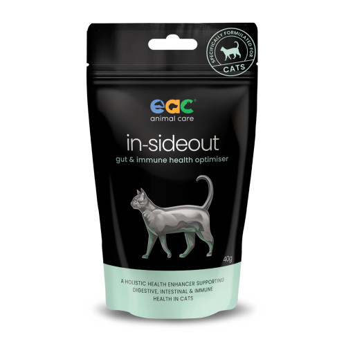 A holistic health enhancer supporting digestive, intestinal & immune health in cats in-sideout contains a nutraceutical blend of natural holistic ingredients including pre & probiotics to support & optimise the immune & intestinal health of your feline friends. in-sideout may assist your cat by:• Supporting digestion & utilisation of nutrients |