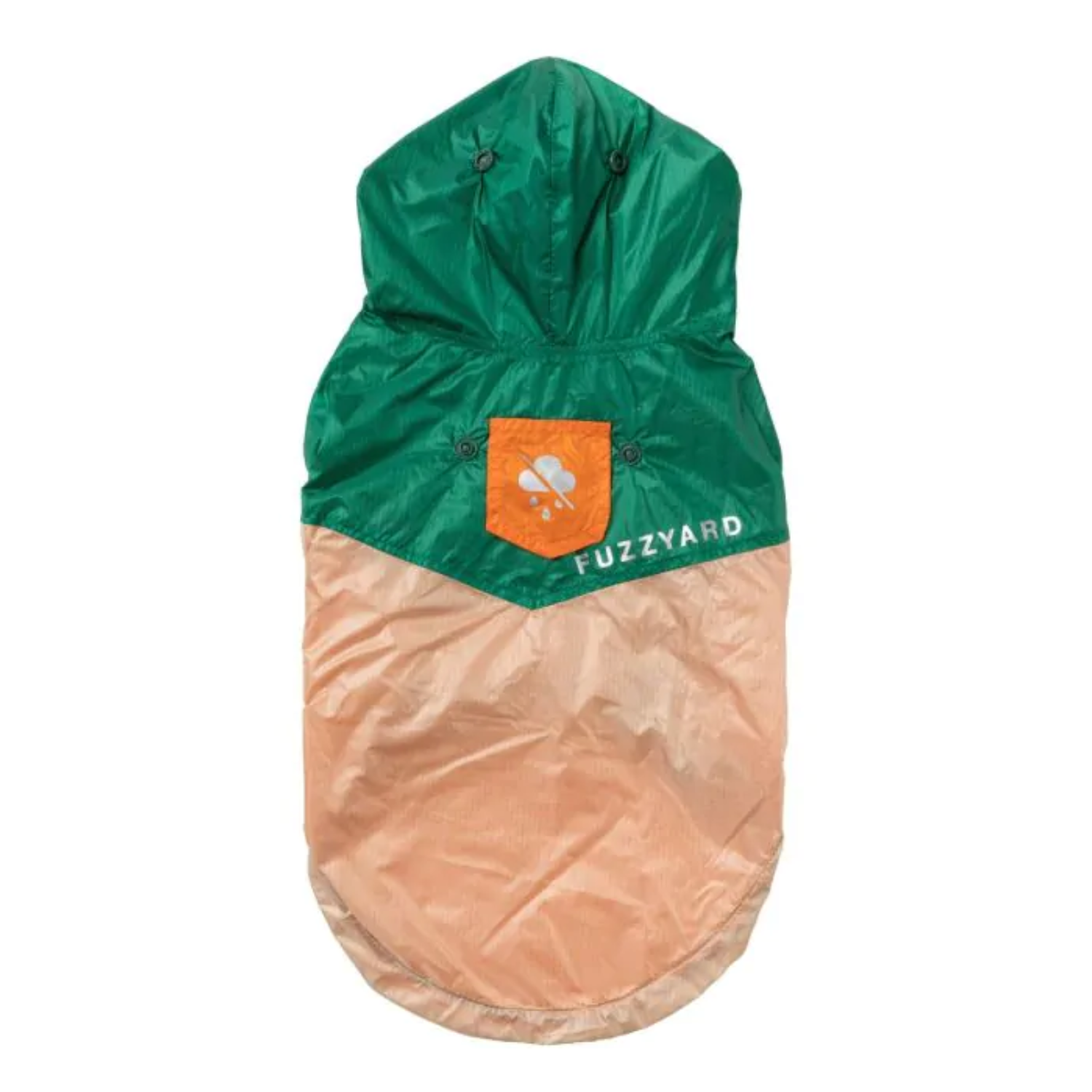 Let's throw it back to the '90s with this vintage-style Ormond windbreaker raincoat by FuzzYard. This water-resistant, lightweight, sleeveless jacket is perfect for those rainy days. It features a colour-poppin' two-toned design with front chest snap buttons that are excellent for easy closure. The snap buttons on the back secure the hoodie back off your pup's head for effortless wearability. An added harness hole with a rain protection flap means your pup can easily wear their harness underneath whilst the flap keeps water from seeping through.