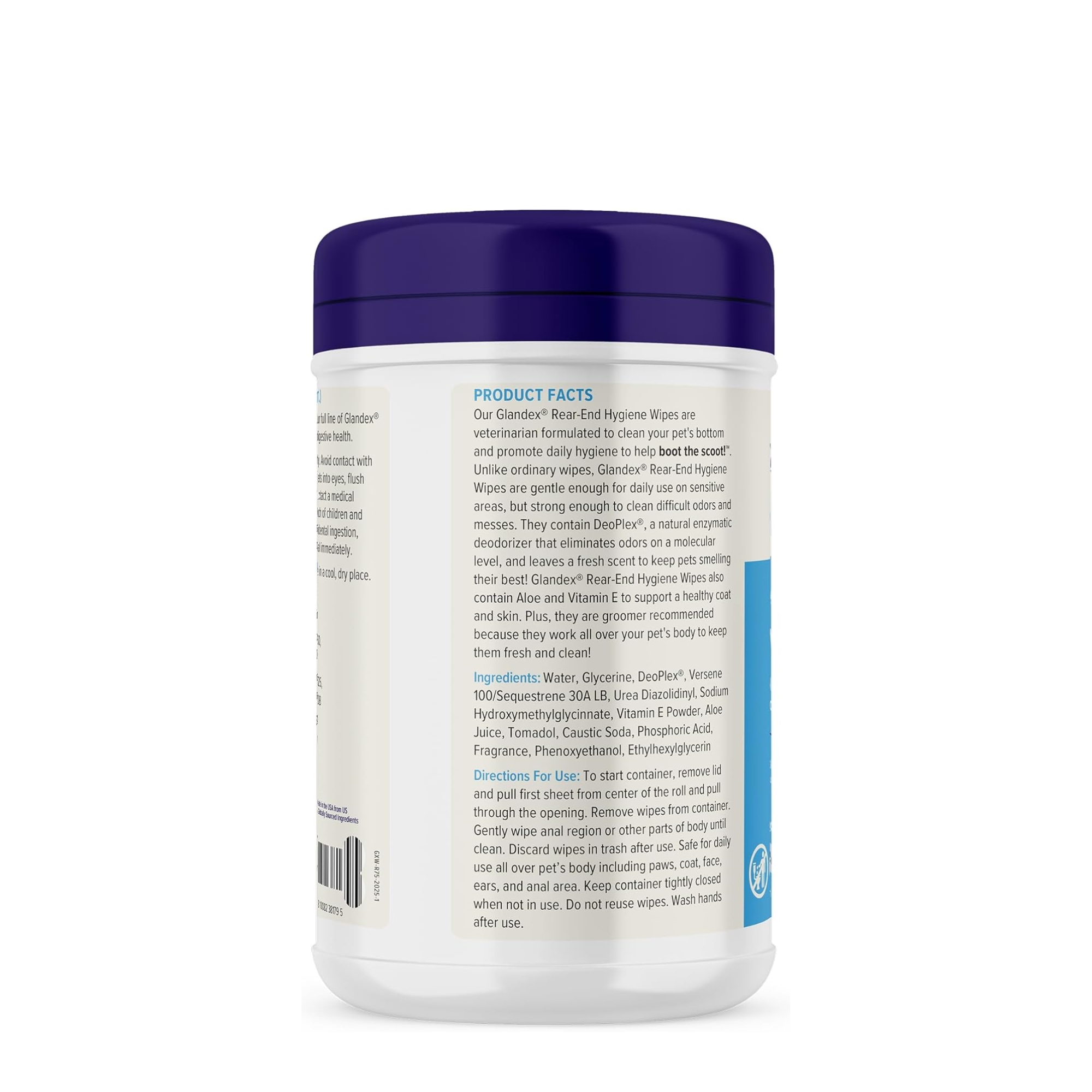 Glandex Anal Gland Hygienic Pet Wipes are hygienic wipes are specifically designed to assist in cleaning the anal region after anal gland expression as well as to help support healthy anal glands. Glandex Pet Wipes are also great for cleaning other parts of the body and for general hygiene of your pet's rear.