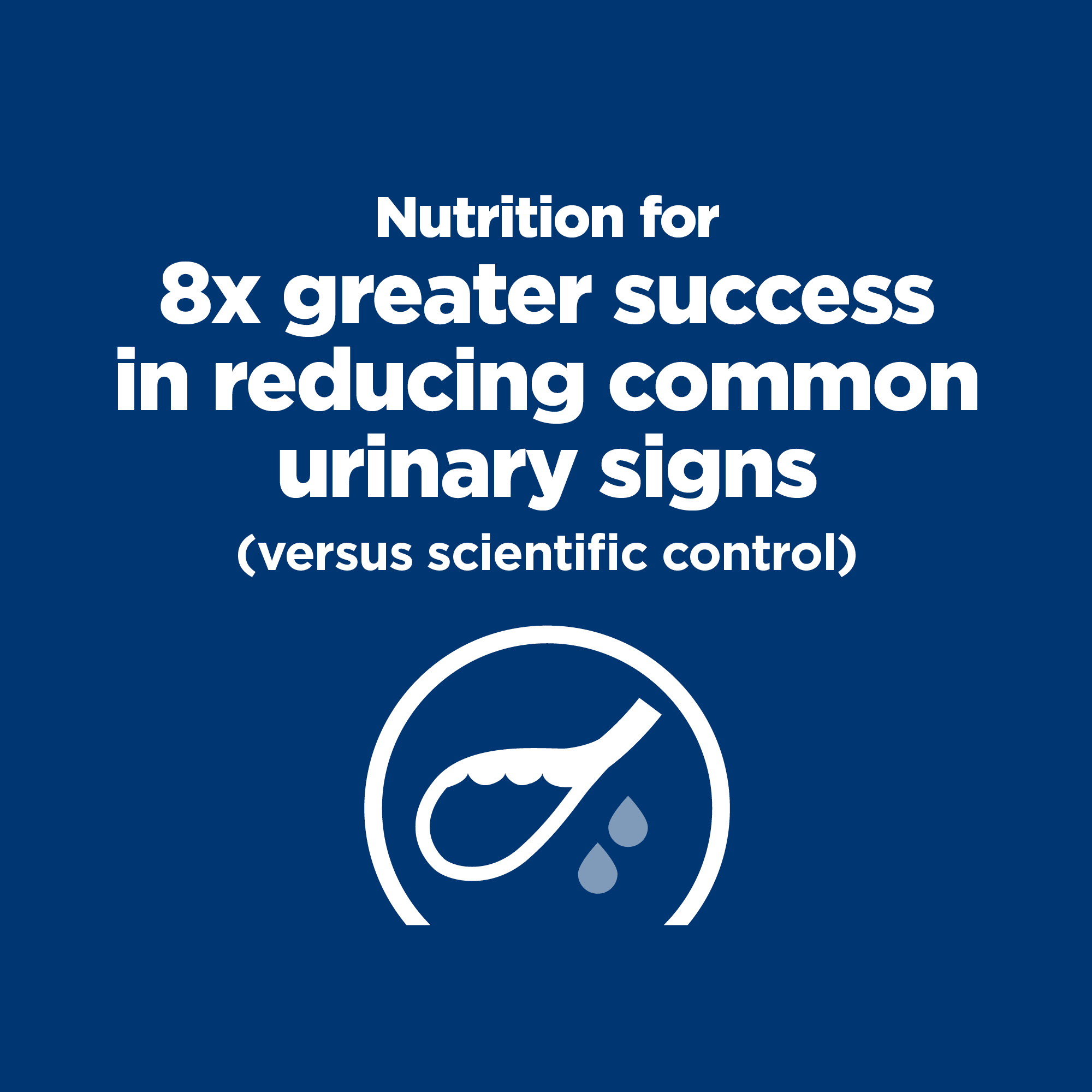 Hill's Prescription Diet c/d Multicare Urinary Care Salmon Wet Cat Food - 12 x 85g pouches (11033AN) was specially developed by nutritionists and veterinarians to support your cats urinary health. Hill's c/d Multicare Urinary Care has been tested to lower the recurrence of most common urinary signs by 89% in cats. This food contains controlled levels of magnesium, calcium and phosphorous to help reduce the building blocks of struvite and calcium oxalate stones. It’s also enriched with antioxidants, potassium citrate and omega-3 fatty acids. Key Benefits