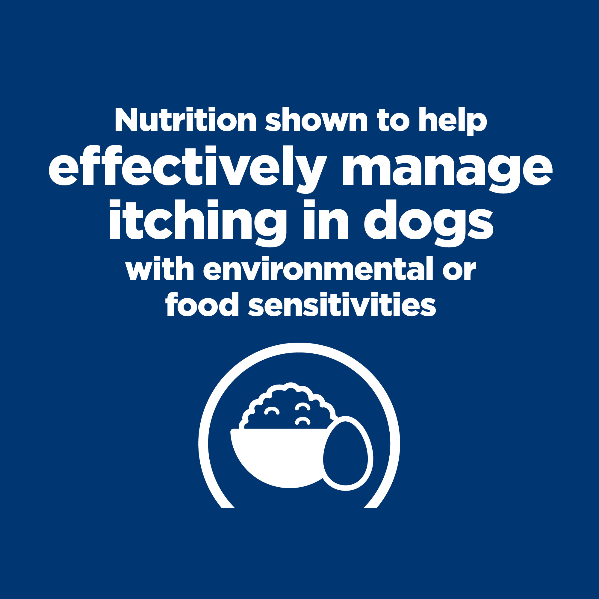 Hill's Prescription Diet Derm Complete Environmental/Food Sensitivities Dry Dog Food is clinically tested nutrition for both food and environmental sensitivities. It’s made in the USA with global ingredients you can trust, and was developed by Hill’s nutritionists and veterinarians. This nutrition is formulated to promote an environment that makes it difficult for struvite and calcium oxalate crystals to form. Key Benefits