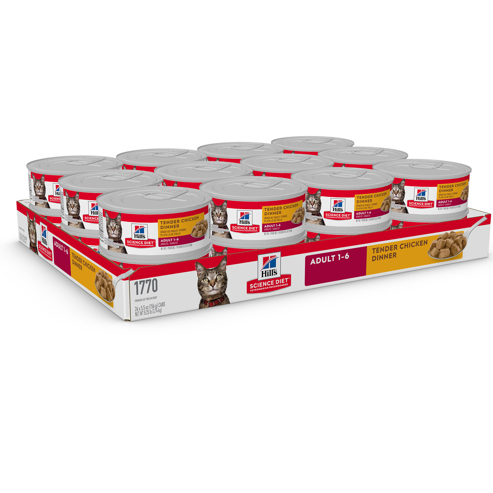Made with purposeful ingredients for a flavourful, nutritious meal, Hill's Science Diet Adult Tender Chicken Dinner is a perfect balance between the taste of tender real chicken and the precise nutrition your adult cat needs. Made in an easy-to-digest balance of taste and nutrition, this cat food made with natural ingredients provides your grown cat with high-quality protein for muscle maintenance. Key Benefits