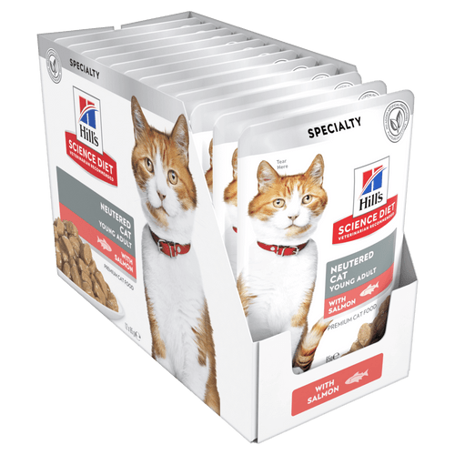 Neutered cats are over three times more likely to become overweight and suffer with urinary problems. Hill's Science Diet Neutered Cat Young Adult With Salmon is tailored to meet the needs of neutered cats. Formulated with clinically proven antioxidants and a unique weight management formula. Key Benefits