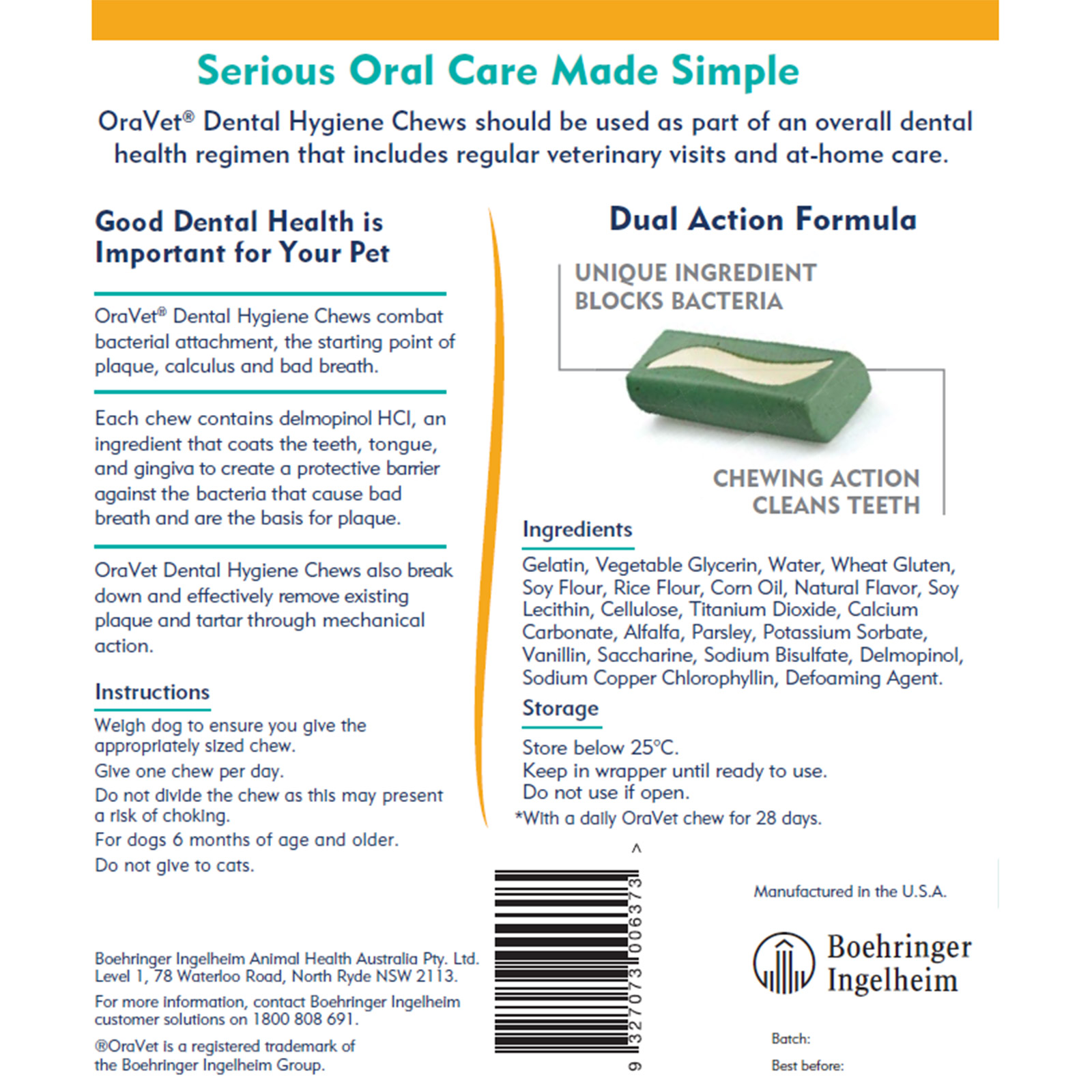 OraVet Dental Hygiene Chews combine indulgence with oral healthcare, offering clinically proven effectiveness in promoting dental well-being through a dual-cleaning action, designed for dogs to reduce plaque, tartar, and notably, bad breath. Key Benefits