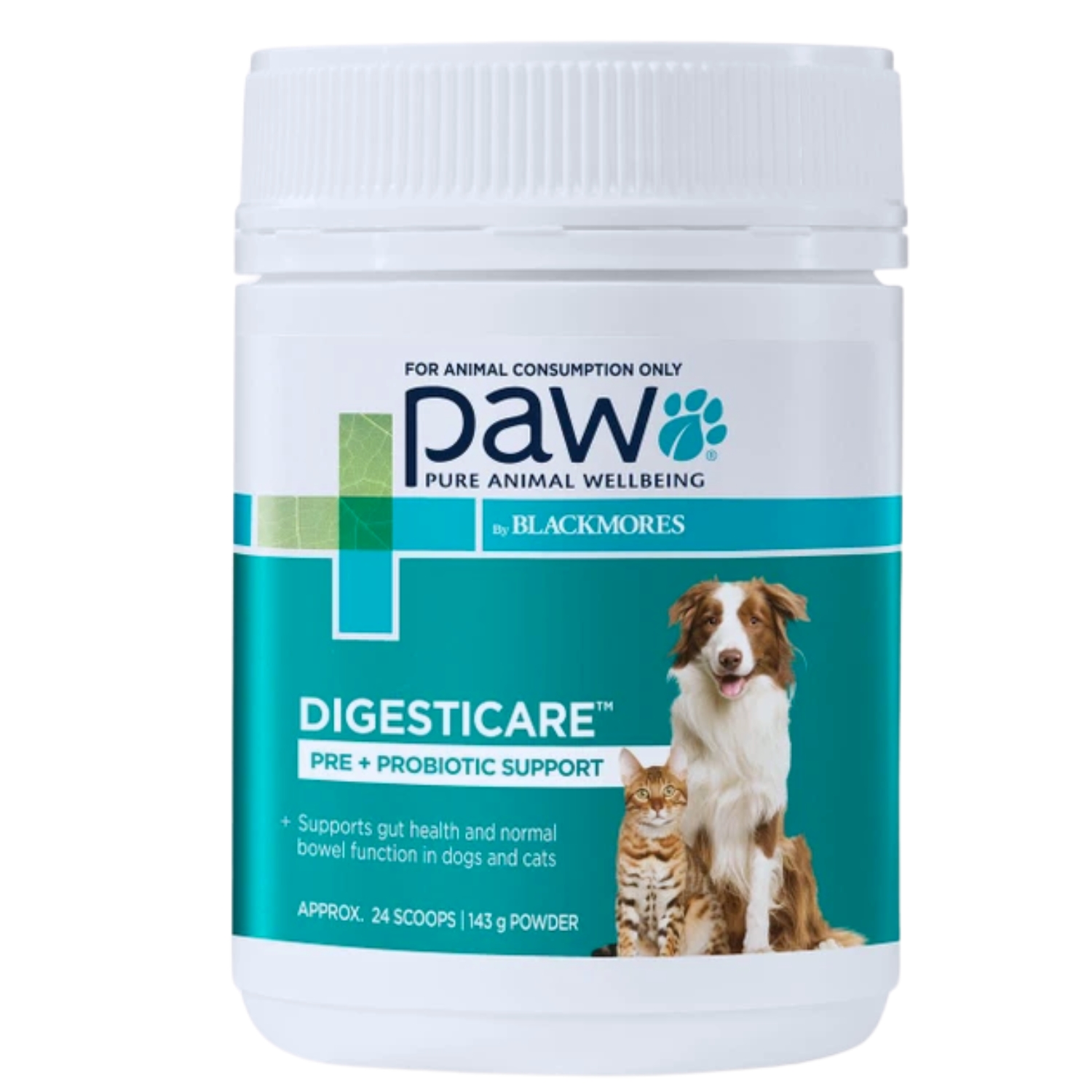 PAW DigestiCare Powder is an all-in-one solution for optimal daily gastrointestinal health. This advanced formulation modulates bowel movements, influences the gut microbiome, and improves stool quality. Key Benefits