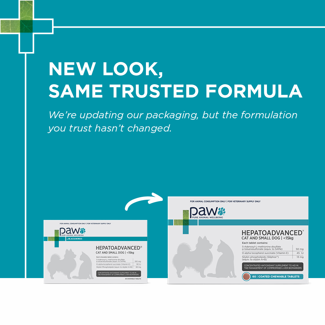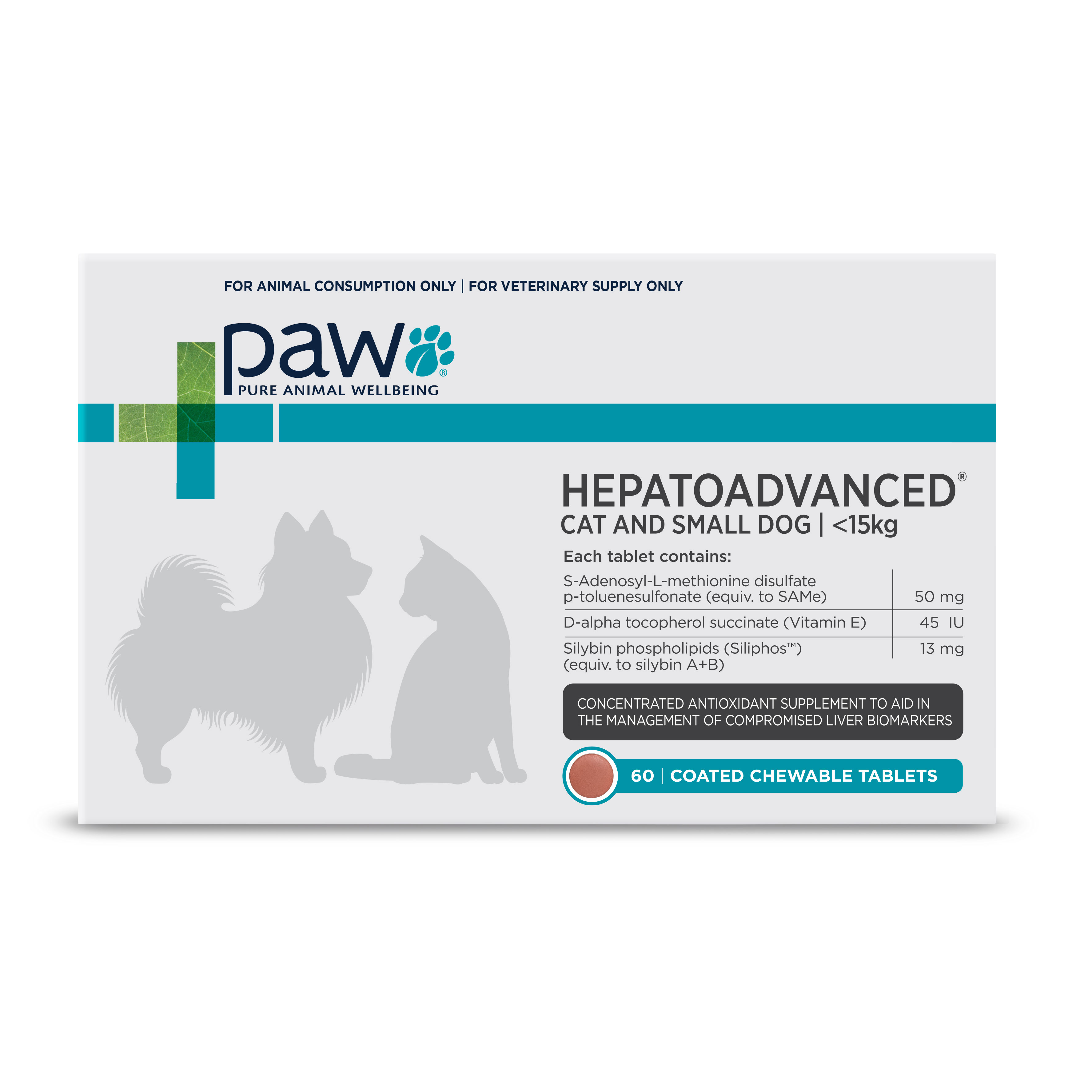 PAW Hepatoadvanced For Cat And Small Dogs Promotes Liver Detoxification. A concentrated antioxidant supplement to help manage compromised biomarkers of the liver. It is recommended that a veterinarians opinion be sought before and during the use of this product in order to determine the needs of your pet. Key Benefits