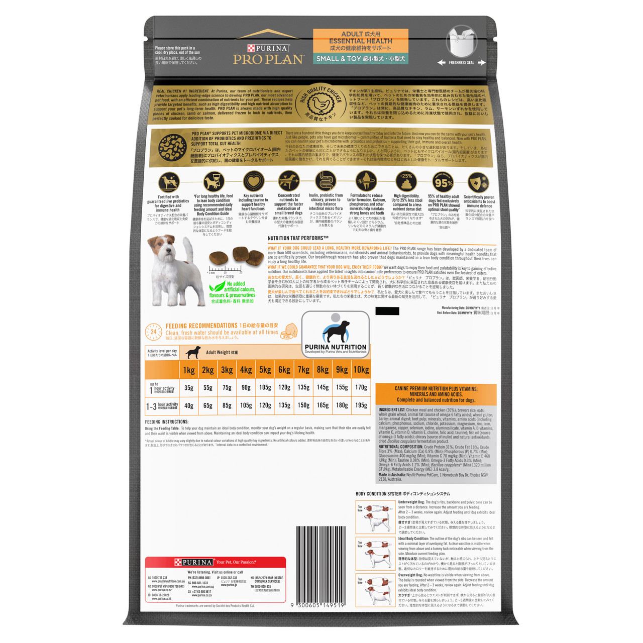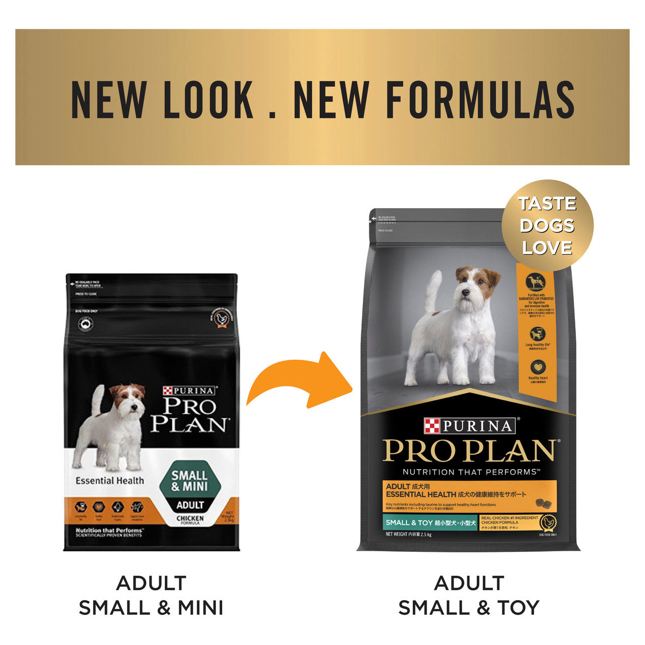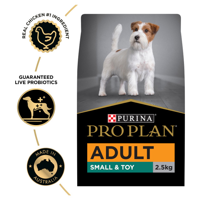 PRO PLAN Adult Small & Toy Breed Chicken Dry Dog Food with Probiotics provides advanced, everyday nutrition backed by scientifically proven benefits. Real Chicken is the #1 ingredient, and is formulated with highly digestible, quality ingredients for superior nutrient absorption.These recipes help provide targeted benefits, such as high digestibility and high nutrient absorption to support your dog's long-term health. The small, bite-sized kibble makes chewing easier for small or toy breed dogs. Now with PRO PLAN, you can nourish your dog's microbiome with Probiotics to support their gut, immune and overall health. Key Benefits