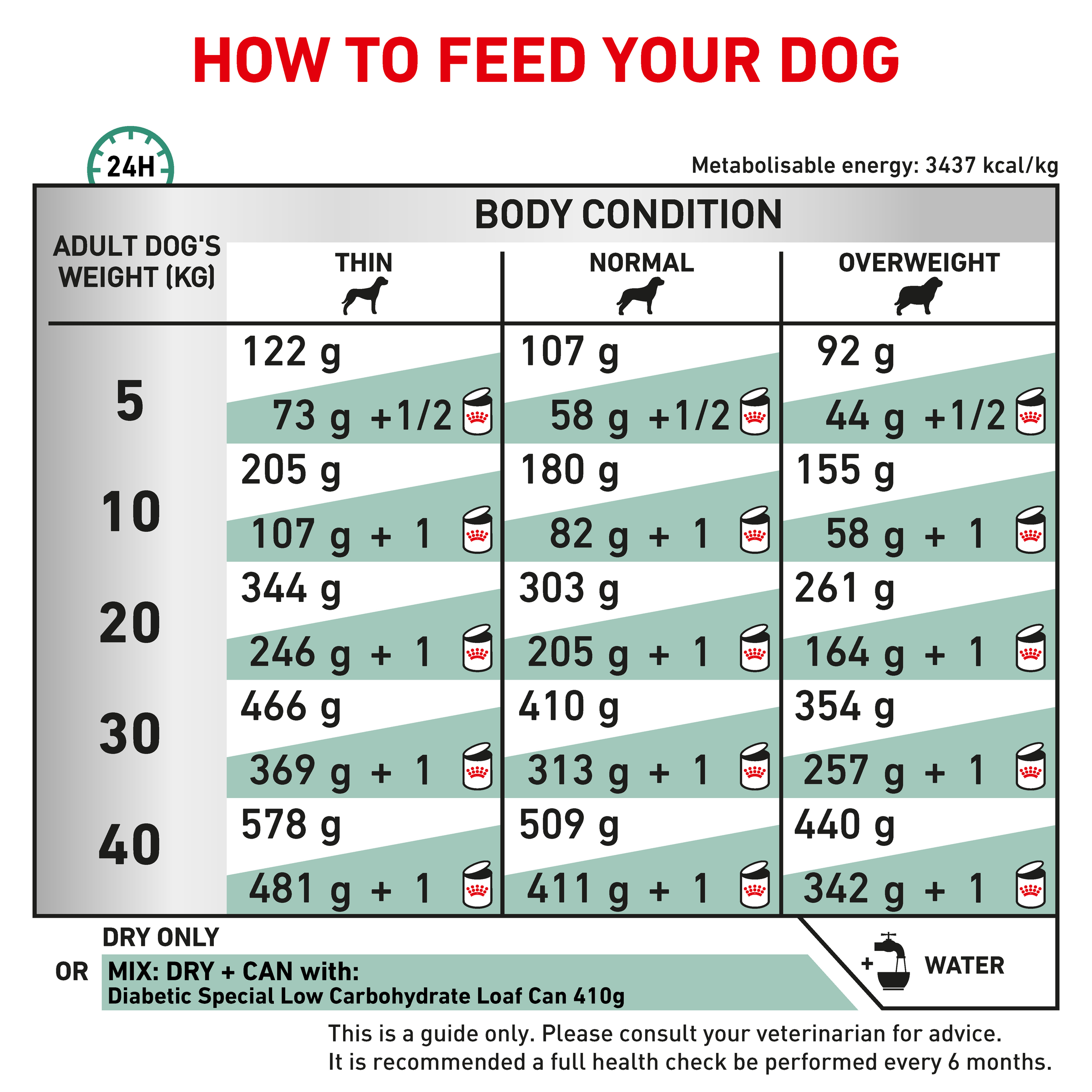 • The guidelines are a starting point and your pet may need more food depending on age, activity level and temperament.