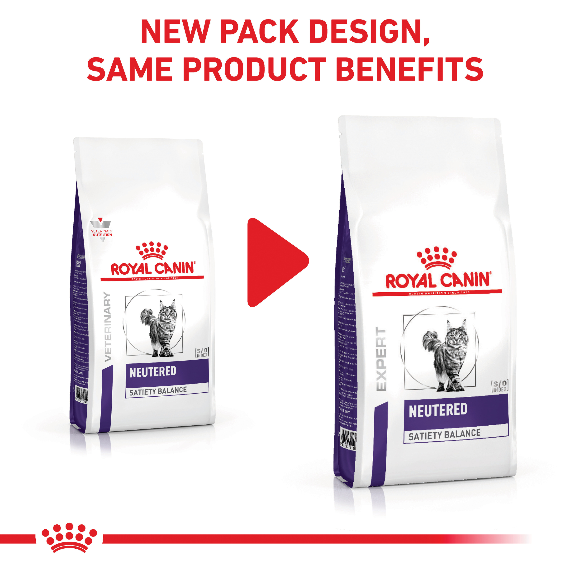 Royal Canin Veterinary Diet Feline Neutered Satiety Balance Dry Food is a complete food for neutered (desexed) adult cats or with a tendency to gain weight, from neutering up to 7 years old. This diet replaces both Royal Canin Feline Neutered Young Male Dry Food and Royal Canin Feline Neutered Young Male Dry Food. Benefits