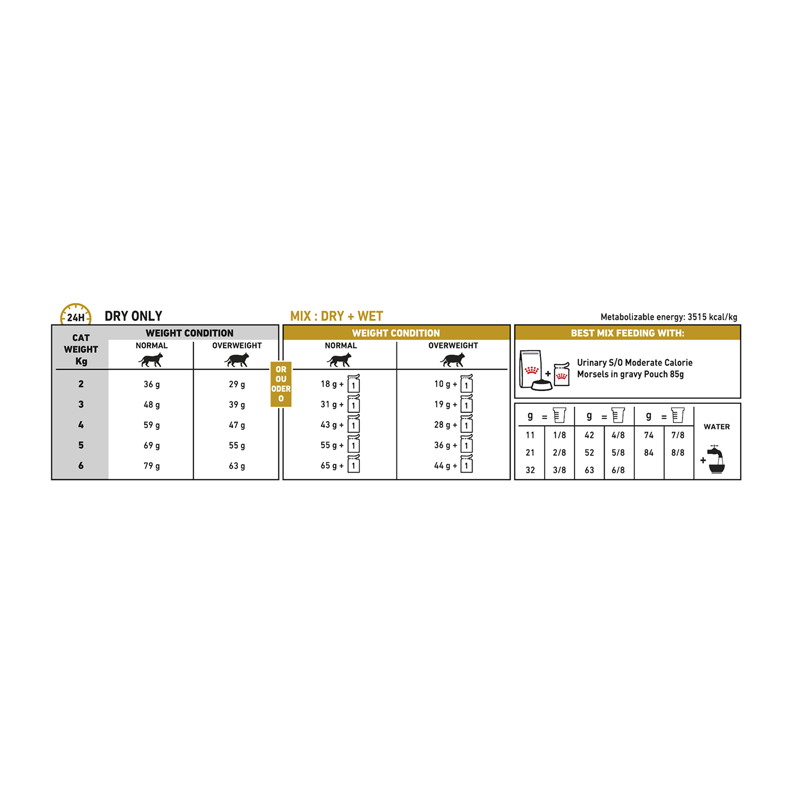 Recommended for cats with tendency to be overweight in cases of: Struvite uroliths: dissolution and management of recurrence, Calcium oxalate uroliths: management of recurrence. Not recommended in case of: Chronic Kidney Disease (CKD), Heart disease (when sodium restriction is sought), Concurrent use of urine-acidifying drugs, Growth, gestation, lactation, Hypertension. |