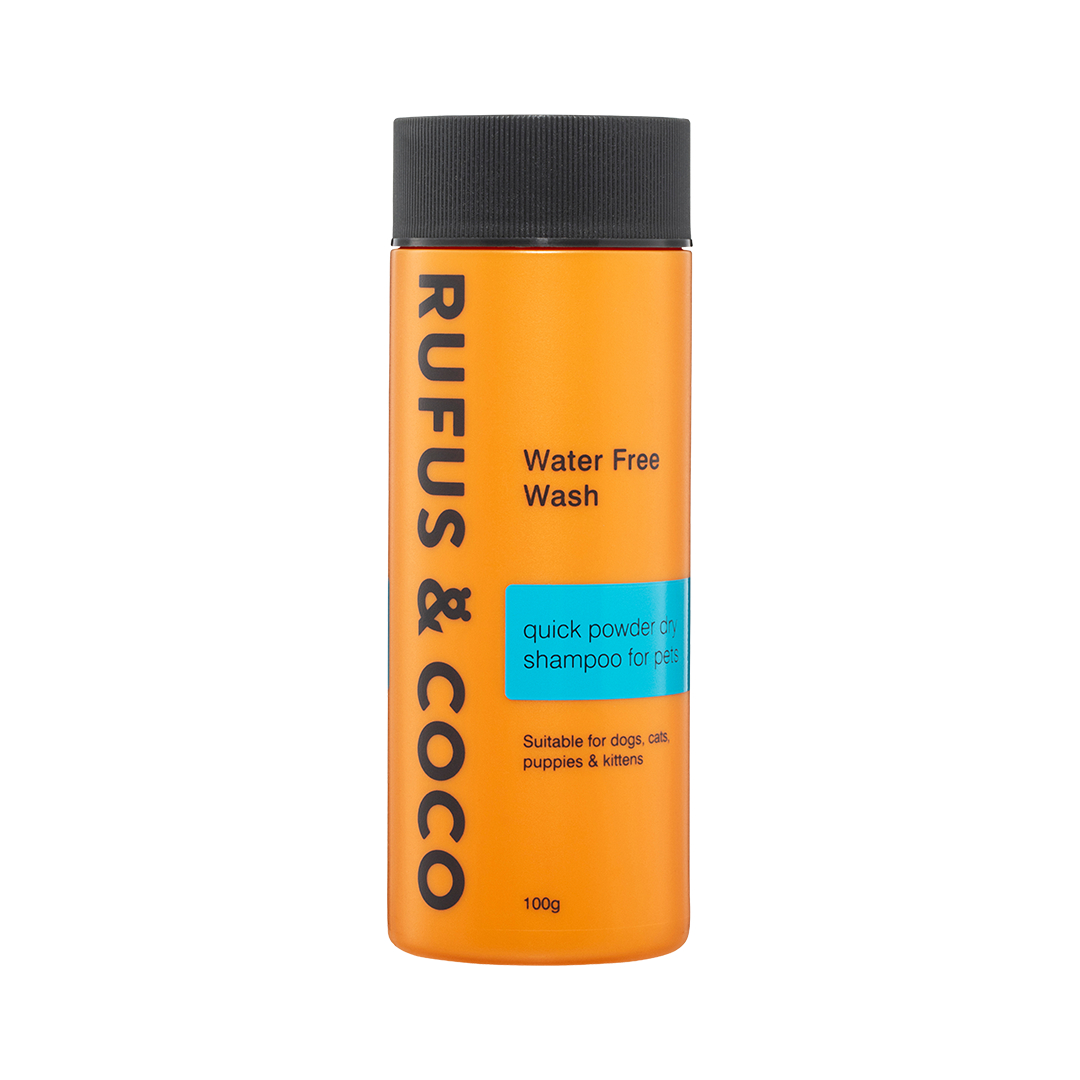 Rufus & Coco Water Free Wash is a professionally formulated dry shampoo made from natural ingredients for dogs and cats, especially those that dislike water.