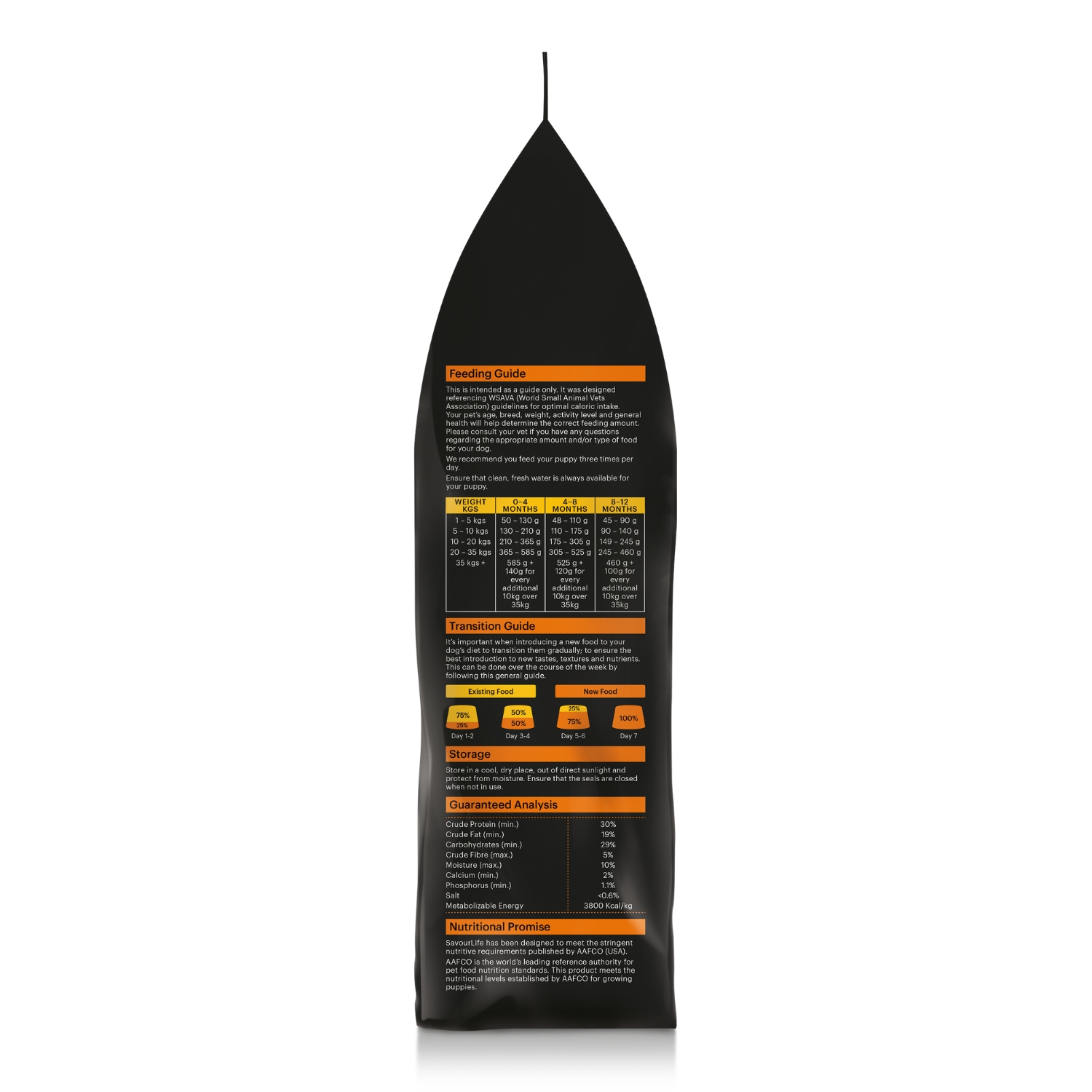 The first months of a puppy’s life are crucial to their long-term health and well-being. Puppies require more nutrients and energy than older dogs to help them grow into the best dog they can be. With all the healthy vitamins, minerals and nutrients to ensure your puppy’s development; SavourLife’s for Puppies with Australian Chicken is an all-natural, holistic, Australian-made, grain-free, gluten-free food with natural superfood inclusions. We have added the perfect blend of vitamins, minerals, natural prebiotics and amino acids and it contains absolutely no artificial flavours, colours or preservatives. It is made with premium Australian Chicken, the perfect meat for puppies’ sensitive tummies, making it the perfect food for your puppy! Key Benefits