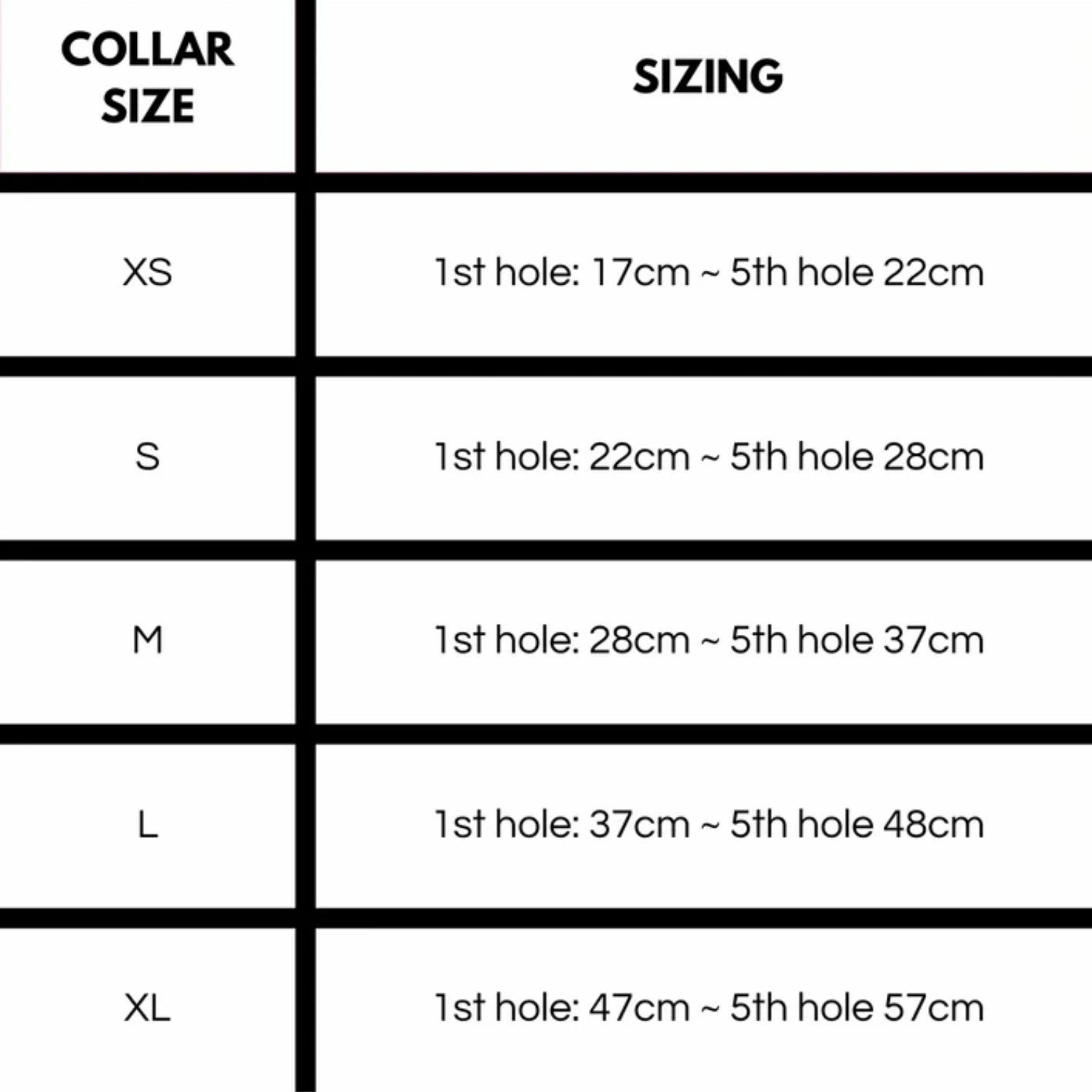 Use a measuring tape around your pup's neck and ensure you have 2 fingers under the tape when measuring to ensure that the fit is not too tight. |