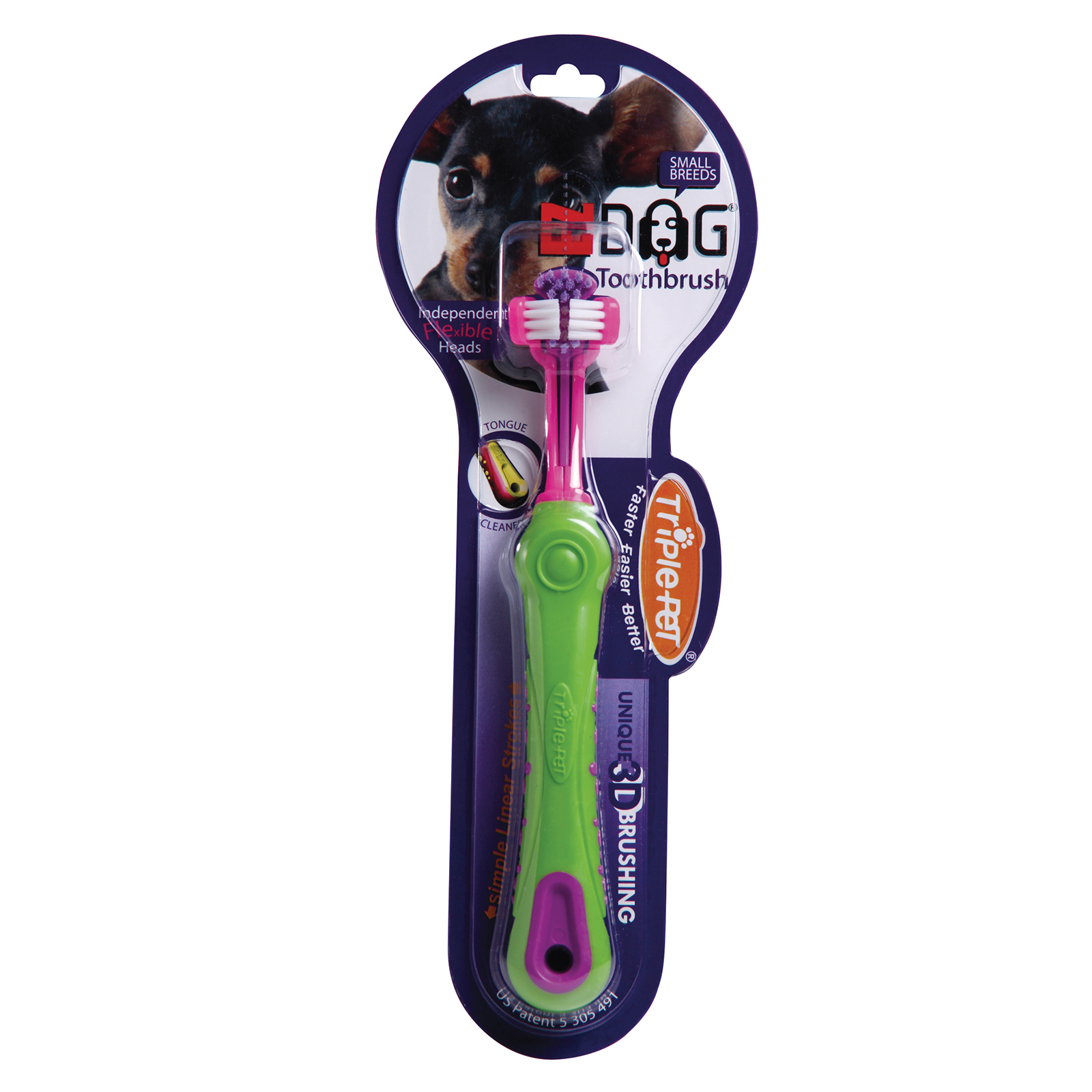 - Has three angled brush head for a effectively cleaning hard to reach areas in your dog's mouth