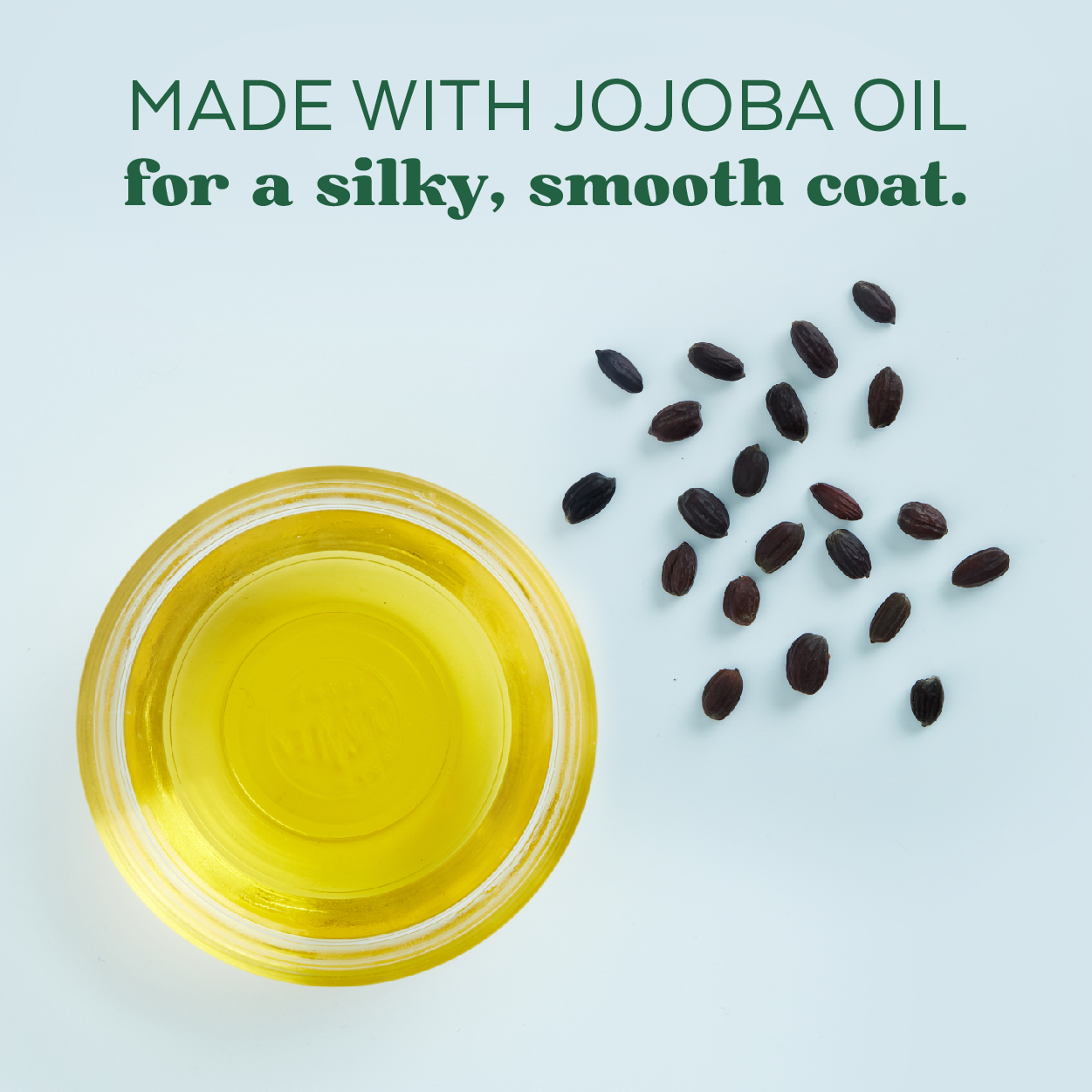 Enrich your pet’s skin & coat with hand-selected, naturally derived ingredients found in TropiClean Essentials Collection. Specially formulated jojoba oil extract dog shampoo helps to condition + balance oil on their skin & coat. Jojoba oil is rich in vitamins B & E + palmitic acid, which aids in balancing the skin’s oil production. Our coconut derived cleanser is safe for your pet and effective at removing dirt. Key Features