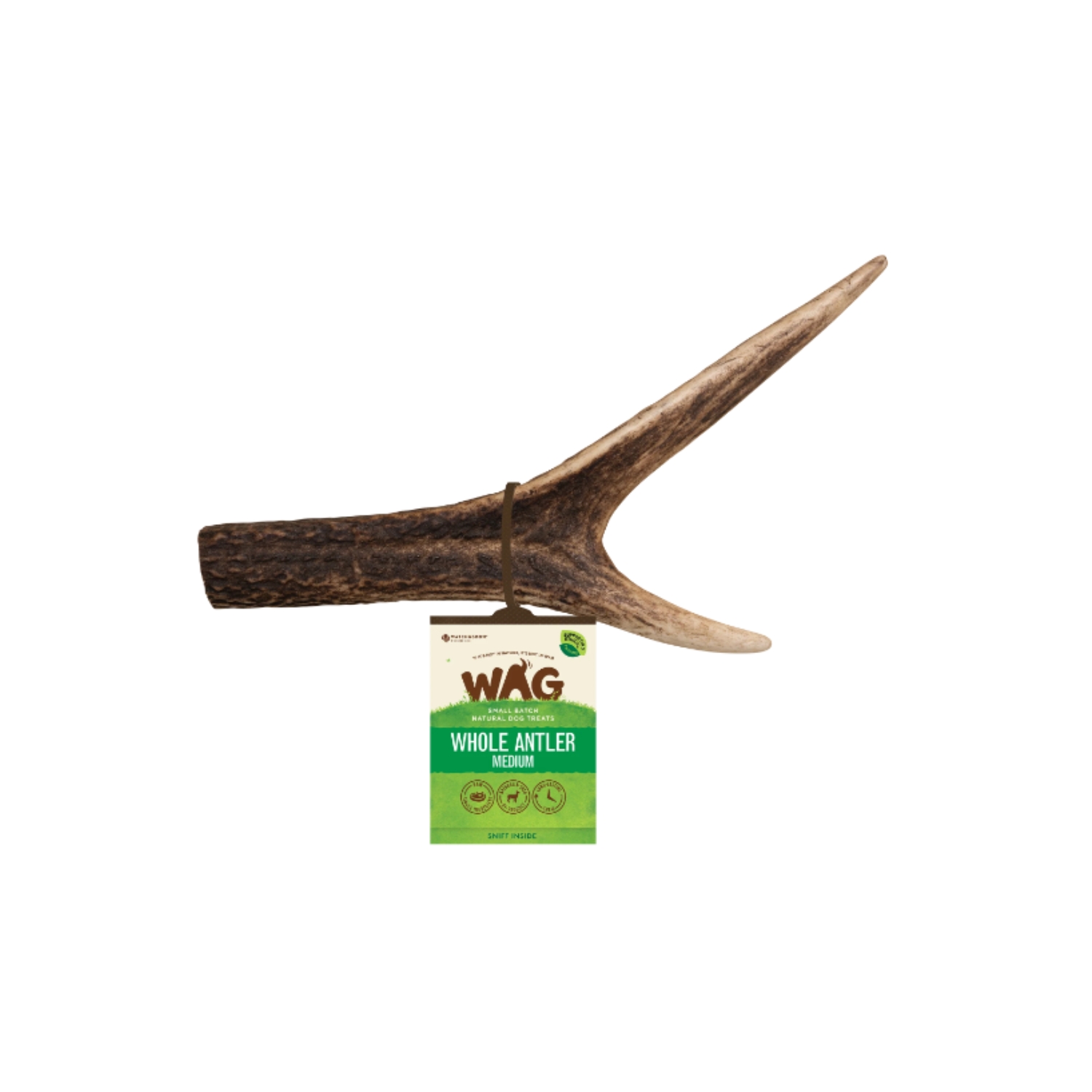 WAG Whole Deer Antlers for dogs are a badass treat that look just as cool as the health benefits they reap. Not only are they rich in two essential doggo minerals, calcium and phosphorus, they also help scrape off up to 70% of plaque and tartar while pups chew away. These are the perfect size and texture for dogs with a bigger, stronger bite who don't mind grunting for the goods. Key Benefits
