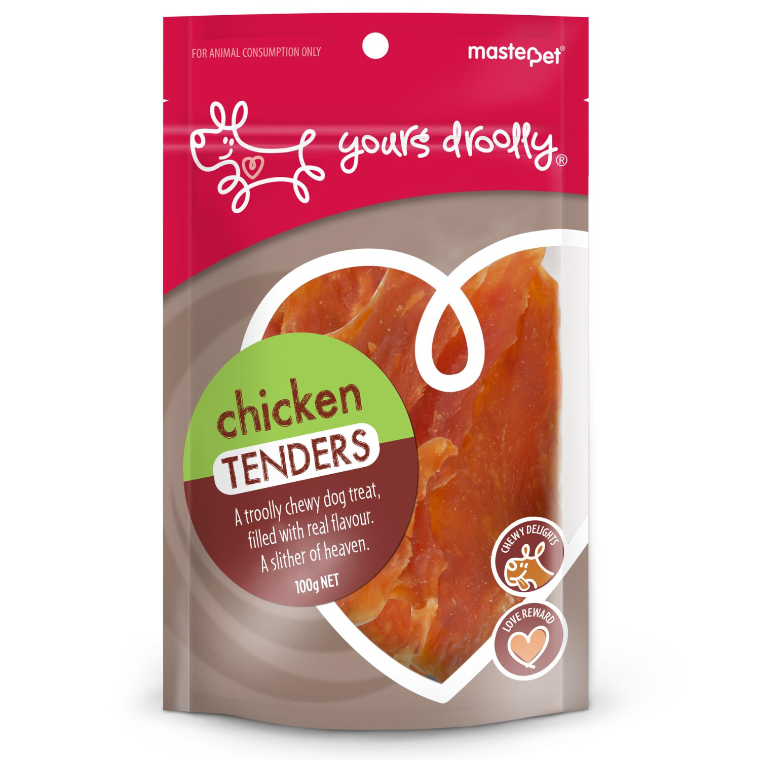 Yours Droolly Chicken Tenders are all natural, made with hormone-free Chicken as the number 1 ingredient. Made from quality, locally sourced ingredients, these delicious treats are made from real Chicken Tenderloin slowly baked to lock in flavour, with no added grains. Low in fat, these treats are perfect for training or rewarding your pooch.