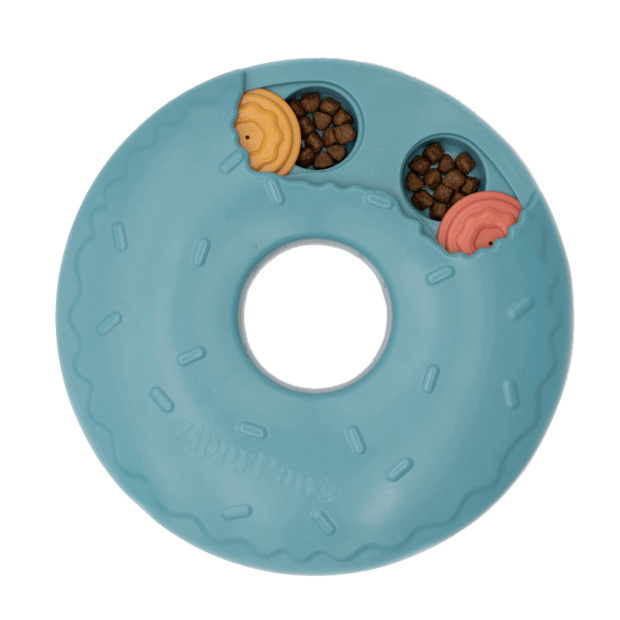 Let your doggo take matters into their own paws with the SmartyPaws Puzzler Donut Slider! This all new interactive toy from ZippyPaws teaches dogs problem solving skills for a fun and engaging way to receive treats or kibble! The Donut Slider features different levels of difficulty that entertain and reduce boredom while teaching your pup problem solving skills. Non-slip base to prevent sliding.
