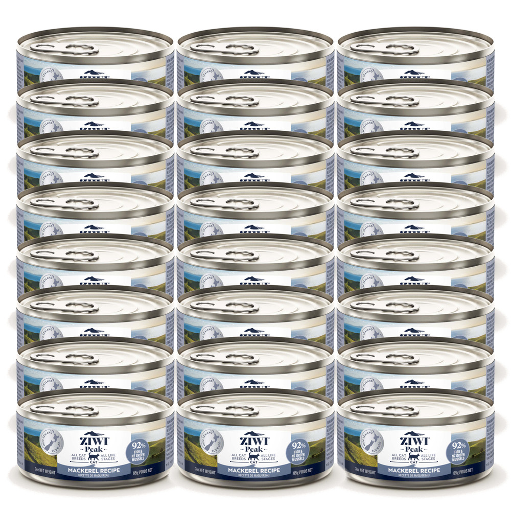 ZIWI Peak Wet Cat Food Mackerel Recipe. Wild-caught and sustainable blue mackerel are found in abundance in the remote and pristine waters surrounding New Zealand’s North Island. A dark and oily fish, loaded with essential omega-3, New Zealand Mackerel recipe is a healthy and delicious choice for your cat.